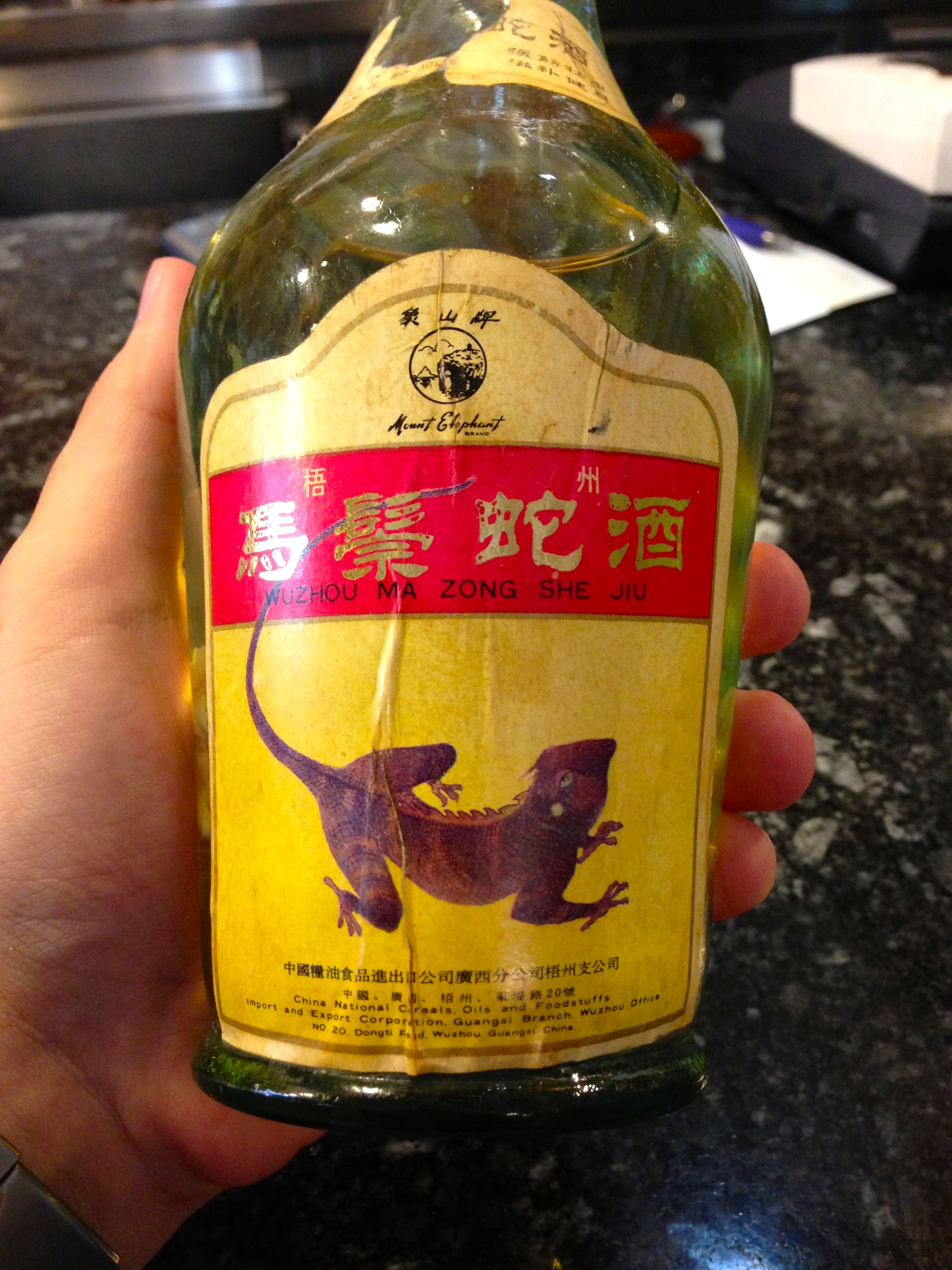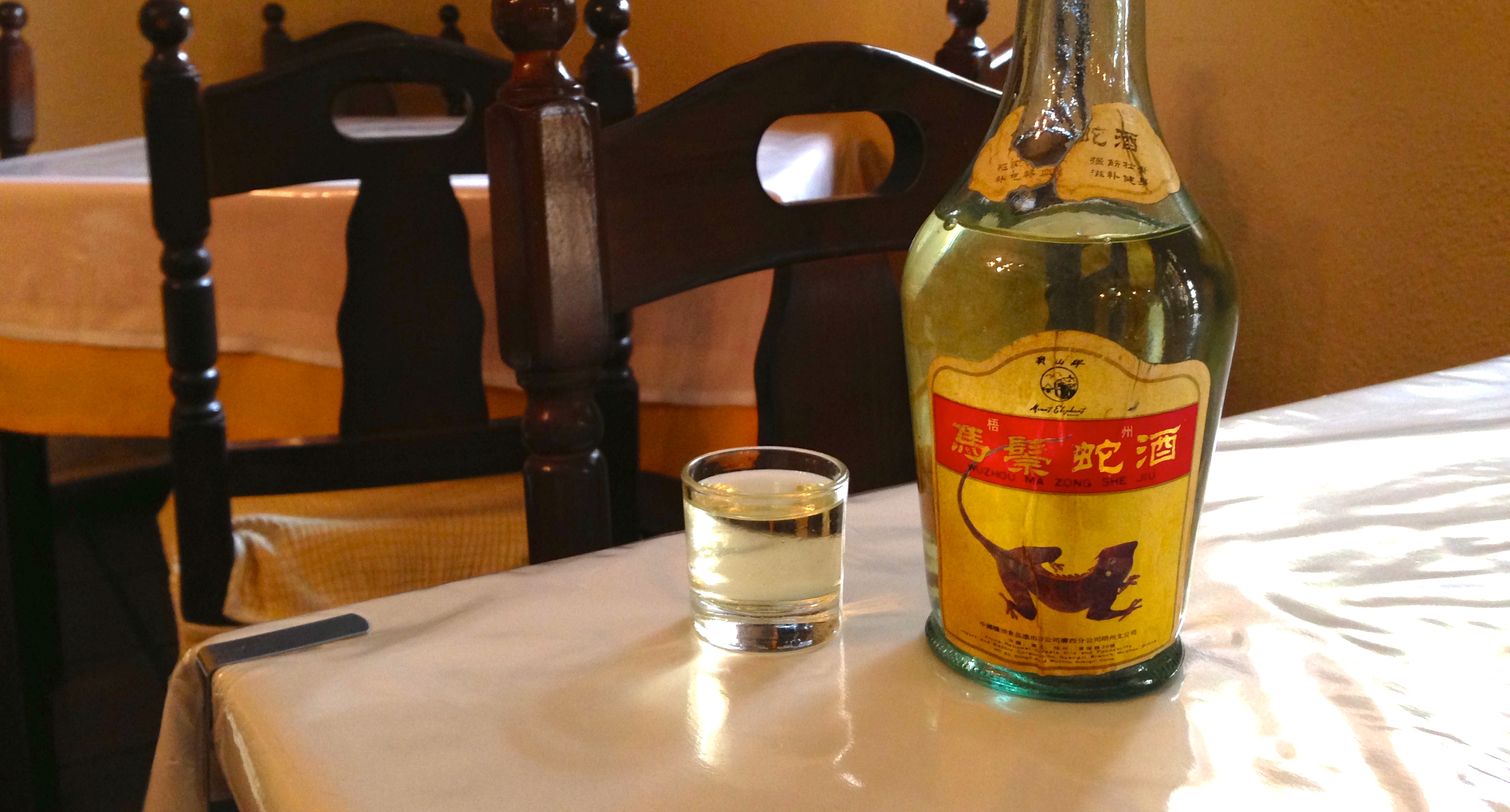 Estoy seguro de que muchos de vosotros habréis visto alguna vez botellas como ésta, con lagartos dentro. Hace unos años era posible verlas en cualquier restaurante asiático, no obstante, en la actualidad son una rareza, puesto que con las nuevas normativas de sanidad, está prohibido importar cualquier tipo de licor con animales dentro en Europa. Aún así, hay quien las conserva como un tesoro, y gracias a mi amigo Dani Ochoa, pude concretizar un deseo que tenía desde pequeño.
