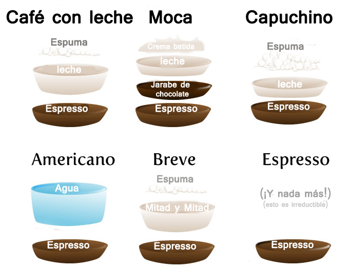 tipos de cafeEspresso no es un tipo particular de grano, de tostado o mezcla. Espresso es sólo la manera de prepararlo, agua caliente disparada a presión a través de café molido finamente.